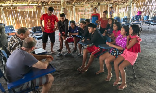 Desde o início do projeto PROLIND em 2022, temos nos envolvido com muitas comunidades no Brasil, incluindo os povos Guarani Mbya, Guarani Kaiowá, Guarani Nhandewa, Tupi, Terena, Baré, Wassu, Tukano, Pankararu, Zoé, Baniwa e Mehinako. No início de 2023, após uma série de reuniões com a comunidade Tenondé Porã, que fala o Guarani Mbya na periferia da cidade de São Paulo, fomos convidados pela comunidade a explorar o uso de auxiliares de escrita por estudantes indígenas do ensino médio e a realizar atividades de fomento à documentação e análise linguística liderada pela comunidade.